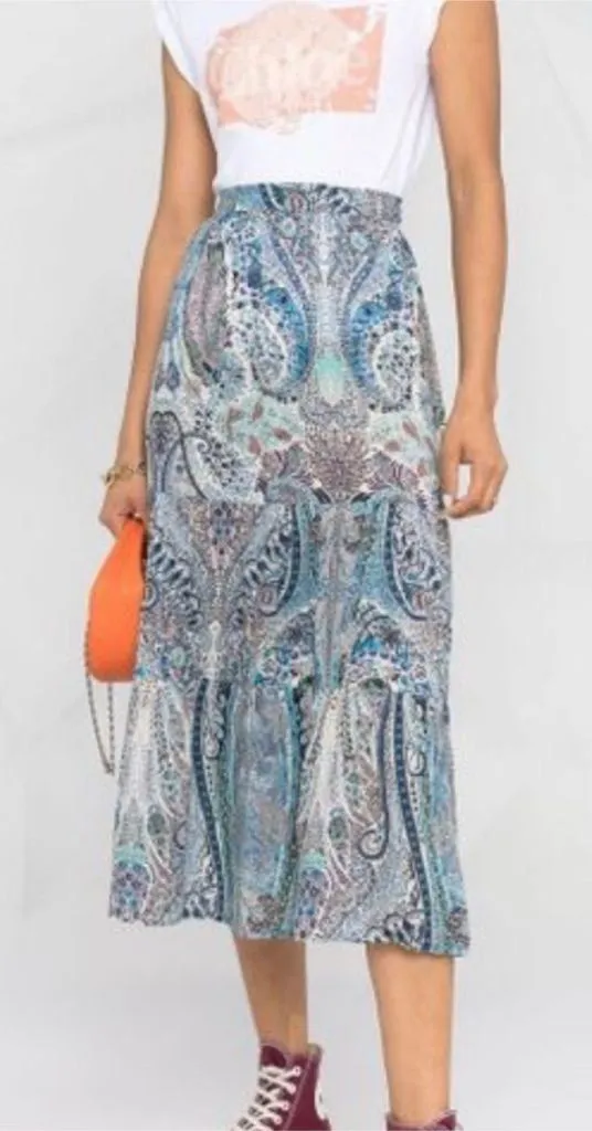 Gorgeous Ba&sh Paris midi skirt featuring an intricate blue and teal paisley print. Lightweight, flo... Show more