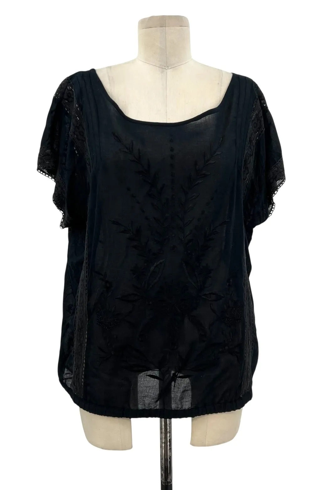 ba&sh Embroidered Top in Black Features round neckline, tonal embroidery allover, lace details, an... Show more