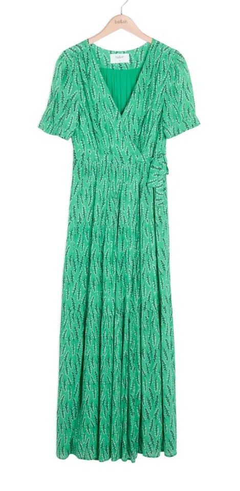 ba&sh Green Corn Wrap Dress 0 US Size 4 Bohemian Resort Floral Maxi Peasant - $75 - From Jennifer