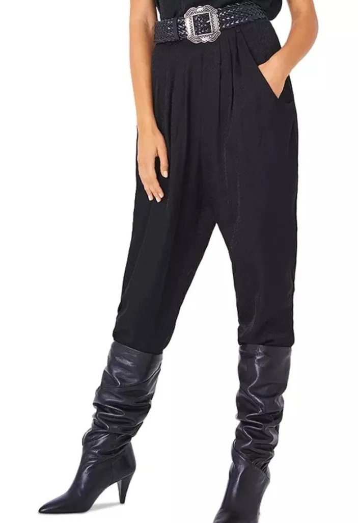 EXCELLENT CONDITION! BARELY WORN! BA&SH JACKO PANT WIDE LEG ELASTIC HEM HIGH WAIST BELT LOOPS PLEAT... Show more