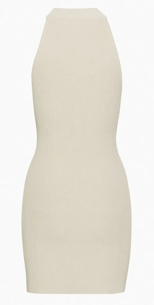 Babaton by Aritzia Sculpt Knit halter mini dress featuring a sleek bodycon fit and ribbed stretch fa... Show more