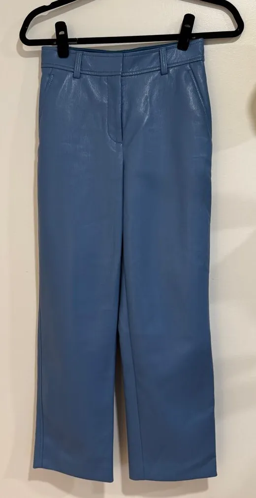 Babaton | Faux Leather Blue Straight Pants Size 2 - $45 - From Anaksantoyo
