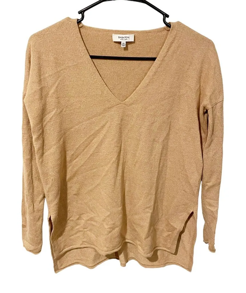 BABATON Womens Size XXS Light Brown V Neck Long Sleeve Thin Knit‎ Tunic Sweater - $36 - From Nacole