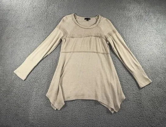 Babydoll Waffle Knit Shirt Women‎ Medium Cottagecore Peasant Fairy Lagenlook Top Tan - $26 - From Remire