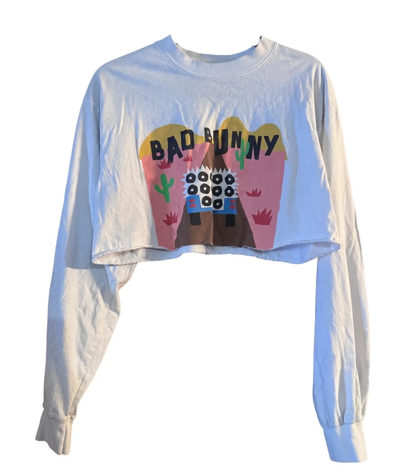 Rock this exclusive Bad Bunny x Coachella 2023 cropped long sleeve t-shirt and capture the vibrant energy of the festival! The striking graphic featuring a desert landscape with the iconic Bad Bunny logo pops against the crisp white fabric, while the 'Coachella 2023' text proudly declares your attendance. Designed with a trendy cropped silhouette and long sleeves, this shirt offers a stylish and comfortable fit perfect for dancing the night away or soaking up the sun. Showcase your love for music and fashion at concerts, music festivals, or casual outings. Measurements: • Pit to Pit: 19 in • Length: 17 in • Sleeve Length: 23 in Keywords: Bad Bunny, Coachella, Music Festival, Concert Tee, Cropped Top, Long Sleeve, Graphic Tee, Artist Merch, 2023 Collection, Streetwear, Casual, Summer Style, Limited Edition Thanks for looking!!
