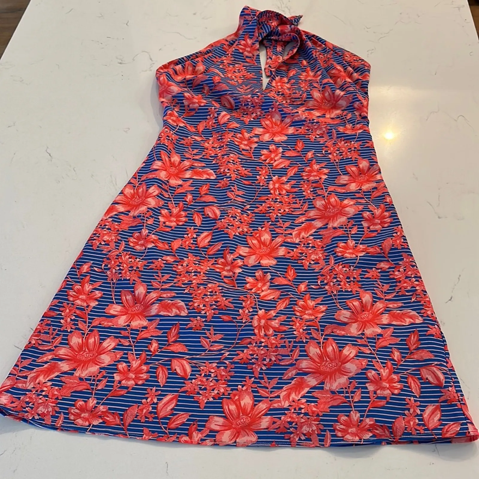 Badgley Mischka Belle Badgley Mischka Floral Halter Top Dress Size Women's 2 Blue - $69 - From Jay