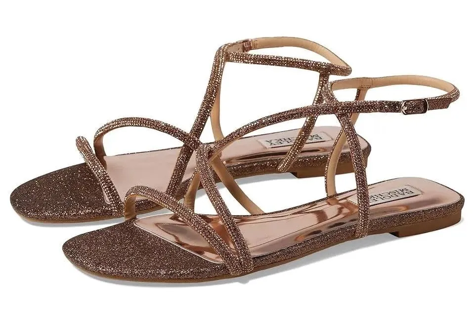 Dazzle with every step in these exquisite Badgley Mischka Ivie sandals. Shimmering rose gold glitter... Show more