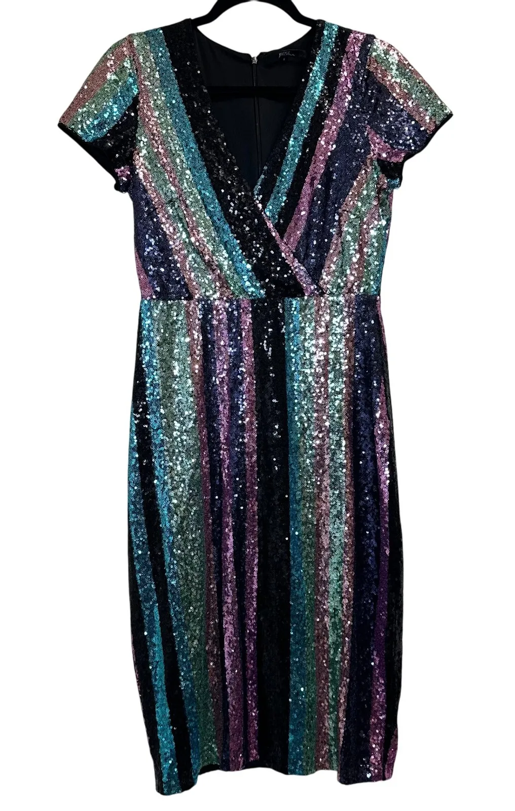 Badgley Mischka Multi Sequin Striped Dress Dress Women's Party Event Size: 6 Approximate measureme... Show more