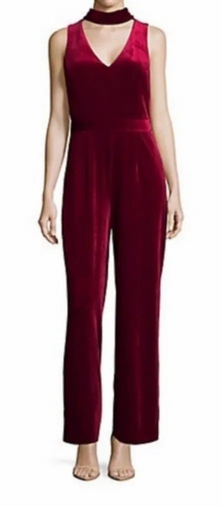 Badgley Mischka red velvet jump suit velvet sz 2 - $51 - From Jess