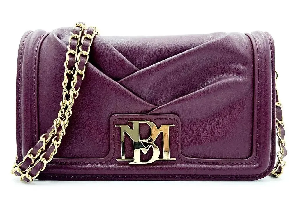 Pleated herringbone design elevates the visual appeal of this boxy faux leather bag. Snap-flap closure Goldtone hardware One inside slip pocket One inside zip pocket Six inside card slots Logo detail Polyester lining PVC Removable crossbody strap, 21" drop 7.5"W x 4.5"H x 1.5"D Please note: Dust bag not included.