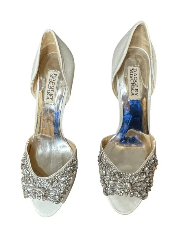 Brand- Badgley Mischka Size- 7.5 Color- Light Gray Beaded *Light scuffing on uppers. Please see pictures.* Measurements: Heel- 3.5" Heel to toe- 10" Width- 3" Measurements taken from the outsole. Condition: Pre-owned, very good used condition. See Photos. Thank you for Shopping. Feel free to check out my listings for various preloved items.