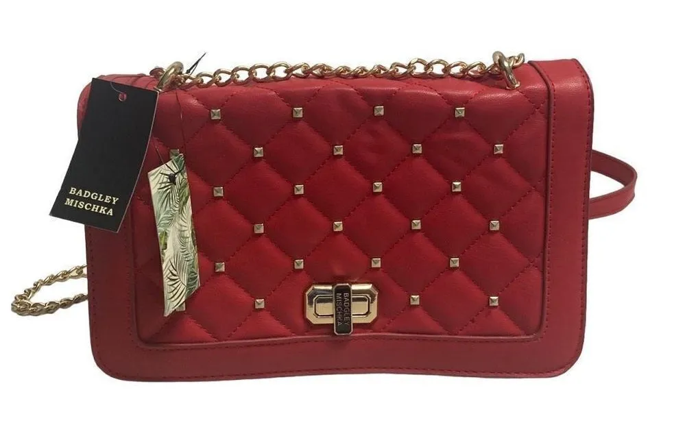 BRAND:Badgley Mischka SIZE: 8.5X3X6.5 COLOR: Red CONDITION: New With Tags MEASUREMENTS: See Pictures MATERIAL: Vegan Leather OTHER DETAILS: Gold Hardware Gold Studs Quilted Pattern Chain & Vegan Leather Strap Please see approximate measurements in pictures before purchasing. Use your own judgment as to the fit. Send me an offer. I will either accept or counter! W345, 28