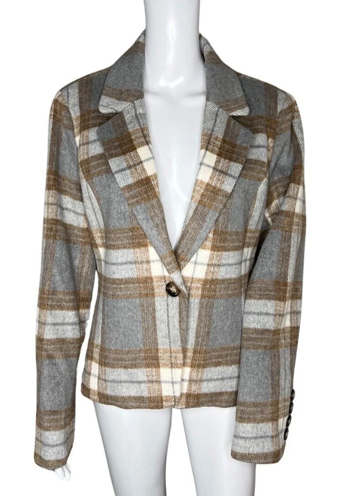 Bagatelle Jacket Womens Large Tan Gray Plaid Bohemian Light Academia Neutral Women’s Size Large Lo... Show more