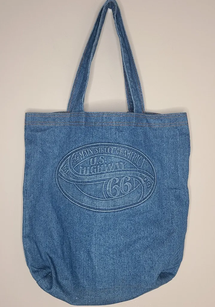 Vintage Blue Denim Jean Tote Shoulder Bag Route 66 Made in USA Good pre-owned condition. Bottom of bag has some discoloration. Please review pics International association of machinists and aerospace workers The main street of America US Highway Route 66 Los Angeles to Chicago Approx Measurements: 14in x 16in x 4in Questions? Leave a comment below!