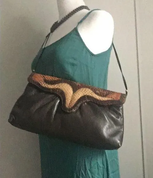 Excellent preloved condition - Bags By Supreme Vintage Leather Snake Skin Purse 80s Retro, Scallope... Show more