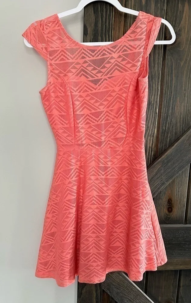 BAILEYBLUE Skater Dress Lace Overlay Lined Sleeveless Pleated Bodice Coral Small Red - $9 - From Christina