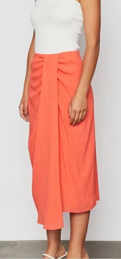 Bailey 44 Salmon Nessa Skirt Size Small In Orange Summer's true staple. Our midi-length skirt with a faux wrap drapes beautifully and pairs with anything. Dress it up with a blazer or down with a classic tee or tank. 6a
