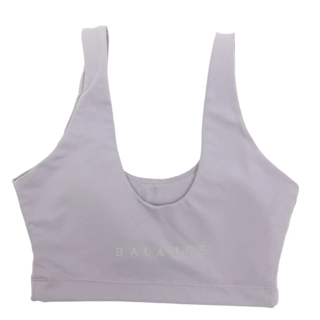 Balance Athletica Ascend Top Sports Bra: Iris EUC Balance Athletica Ascend Top Sports Bra: Iris (Pale Lilac Purple) Size extra Small. •From the Summit Collection • Scoop front and rear necklines •Slots for padding (not included) • Buttery soft OG fabric • Rear center logo spellout Excellent condition with no visible flaws! Stock photos to demonstrate fit and style. Q