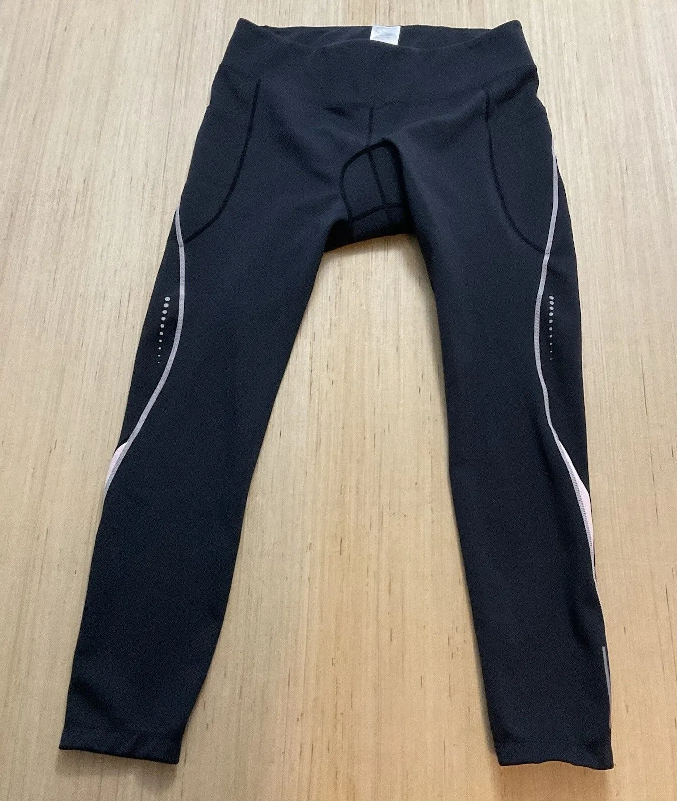 The Baleaf Women's 3/4 Padded Bike Capris Pants in black with pink stripes are designed specifically for female cyclists in size 3XL (does measure at 34 so seem to run small). Featuring a skinny leg style and padded construction, these capris are perfect for cycling in the warmer seasons of spring and summer. Made in China, these pants offer both style and functionality for women looking to stay comfortable and visible while riding.
