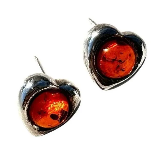 Baltic amber sterling silver vintage heart post earrings Great vintage condition Beautiful! Please see photos. They are part of the description. Happy to answer any questions! New listings every day. Thanks for stopping by!