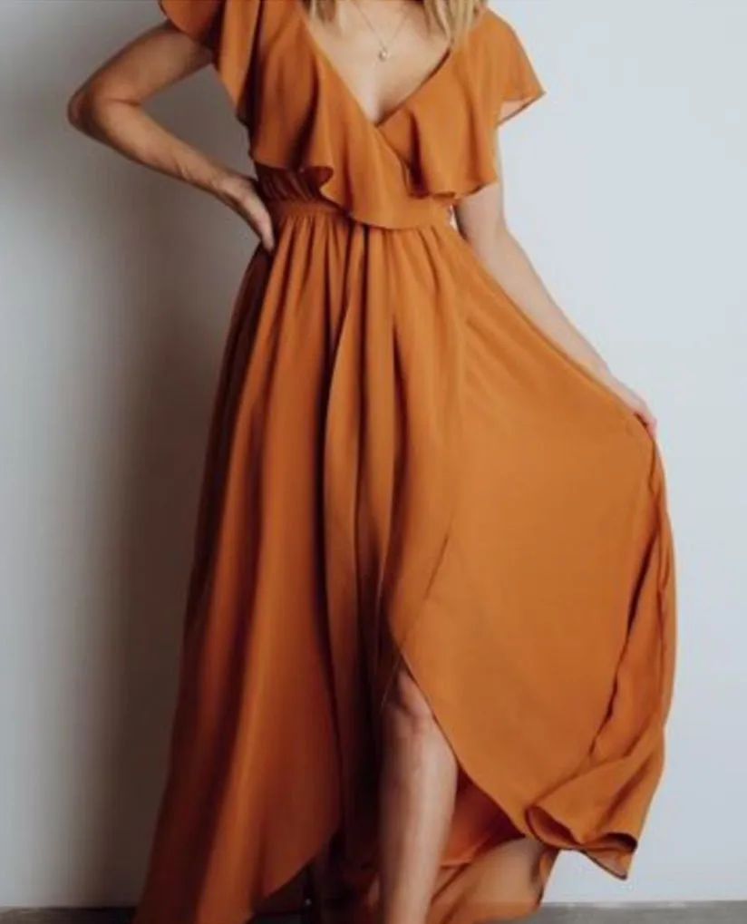 BalticBorn Rust Ruffle Wrap v-neck Maxi Dress terracotta orange flowy Size XXL - $41 - From Jenna