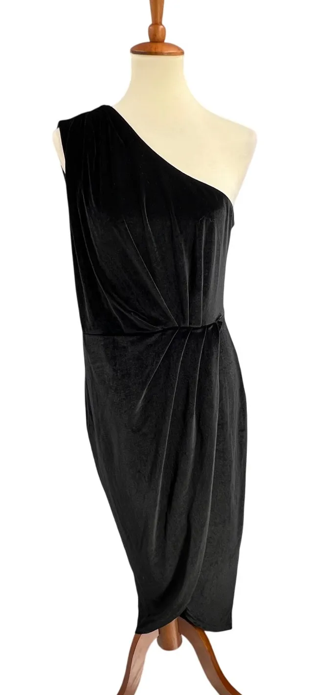Baltic Born One‑Shoulder Black Velvet Dress XL This elegant one‑shoulder dress from Baltic Born fea... Show more