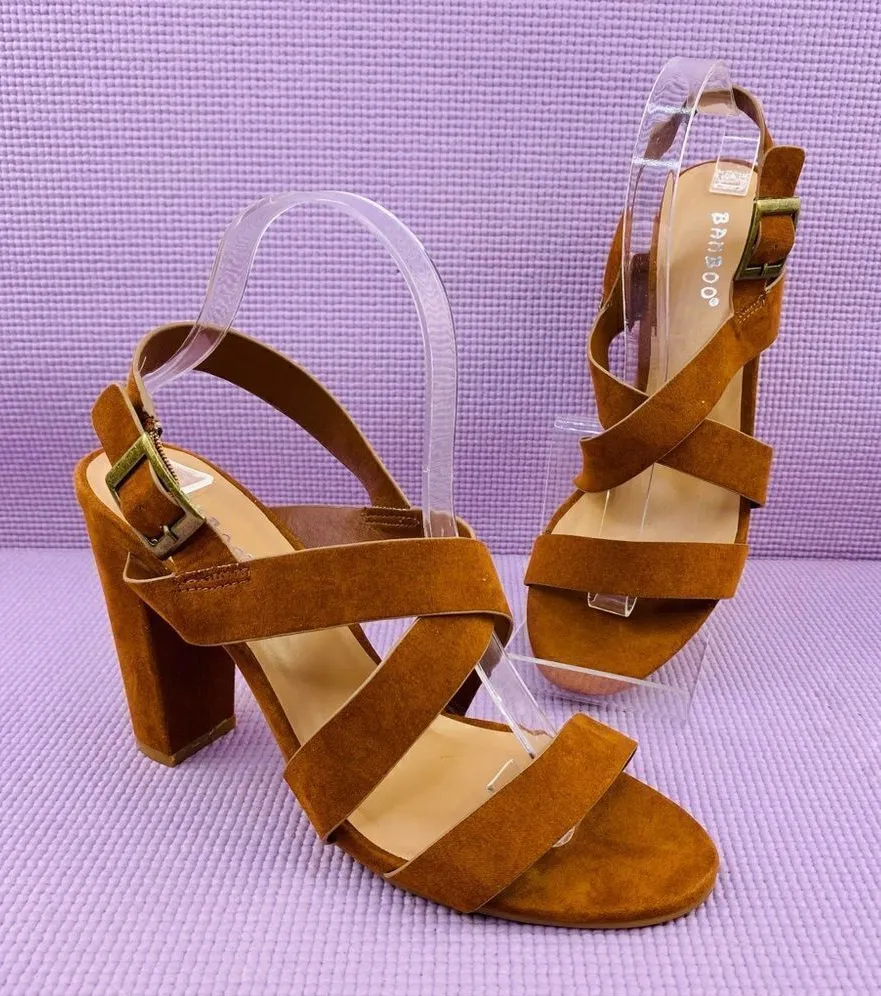 Bamboo Microfiber Strappy Block Heel Sandals Cognac Brown Size 8.5 Cognac brown color, Strappy, O... Show more