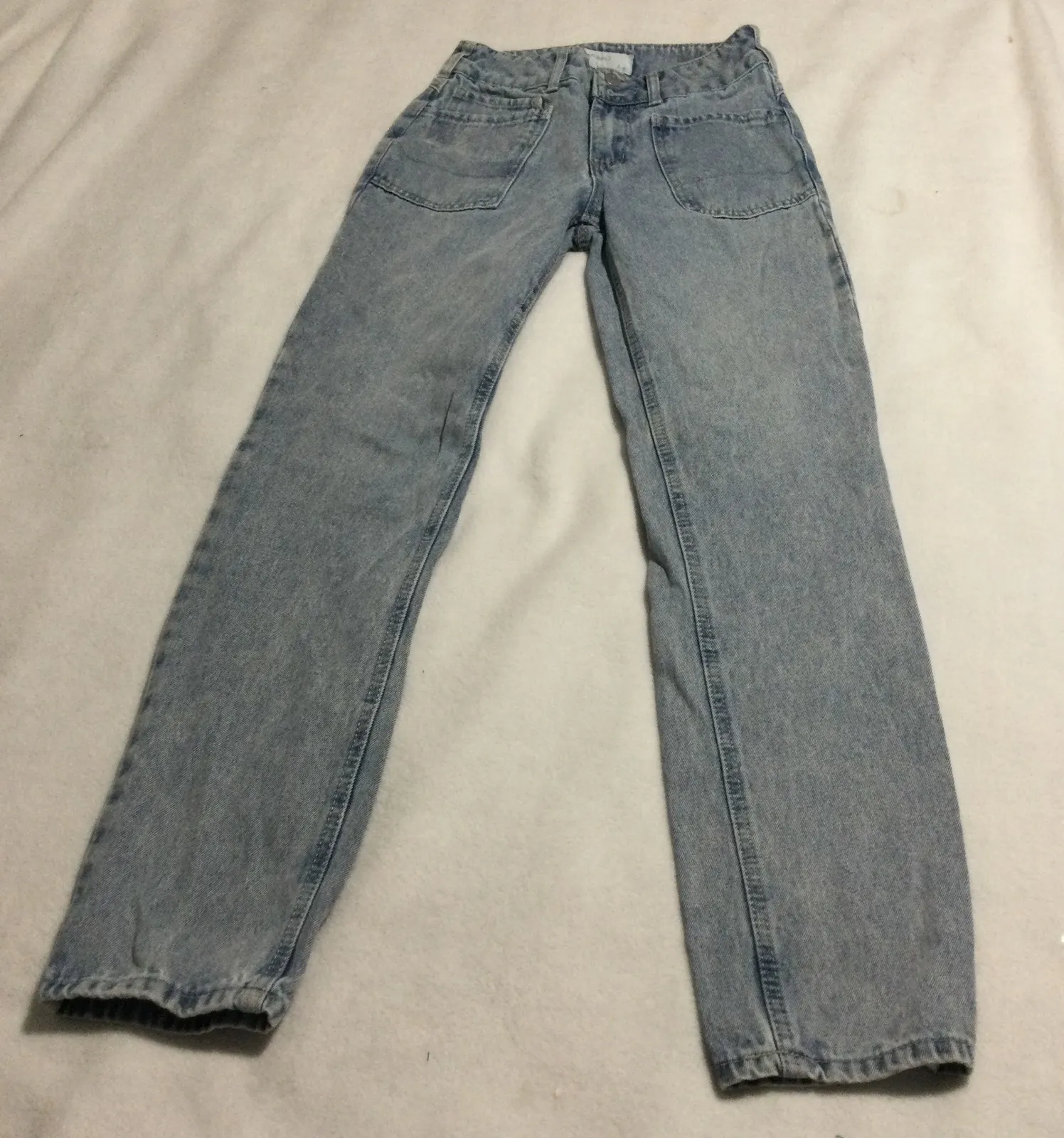Discover effortless cool with these Pan-Jara light wash denim jeans. Designed with a flattering high waist and a comfortable straight leg silhouette, these jeans offer a timeless appeal. The authentic light wash denim evokes a vintage vibe, while the functional cargo pockets add a touch of utilitarian chic. Perfect for adding a stylish edge to your everyday wardrobe, these jeans are ideal for casual outings, weekend adventures, or embracing a relaxed yet polished look. Measurements: • Waist: 26 in • Inseam: 28 in Style: Straight Department: Women Fabric Wash: Acid Wash Waist Size: 28 in Type: Jeans Accents: Button, Zipper Features: Pockets, Distressed Fit: Regular Pattern: Solid Rise: Mid (8.5-10.5 in) Fabric Type: Denim Material: Cotton Closure: Button Season: Spring, Summer, Fall, Winter Pocket Type: Slash Pocket, Coin Pocket Keywords: denim, cargo pants, light wash, high rise, straight leg, vintage inspired, utility, casual wear, everyday style, streetwear, fashionable, wardrobe staple, trendy