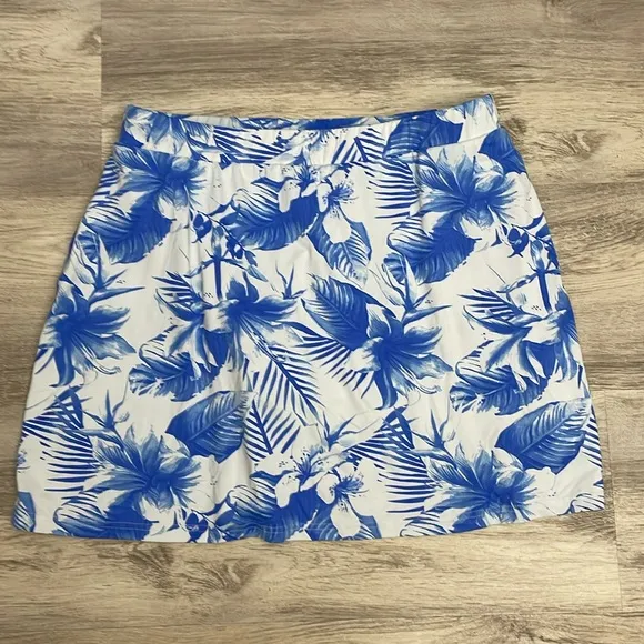 Banana Boat Blue & White Floral Print Pull On Skorts With Side Pockets UPF 50+ Bathing Suit Material... Show more