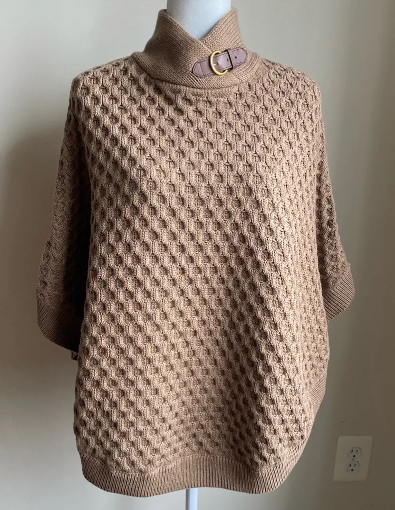 Beautifully classy knit poncho sweater. Size is XS and is a little oversized but neck opening is def... Show more