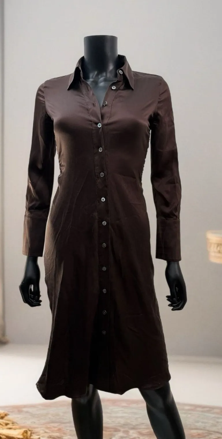 Elegant Banana Republic shirt dress made from 100% silk in a rich chocolate brown color. Features a... Show more