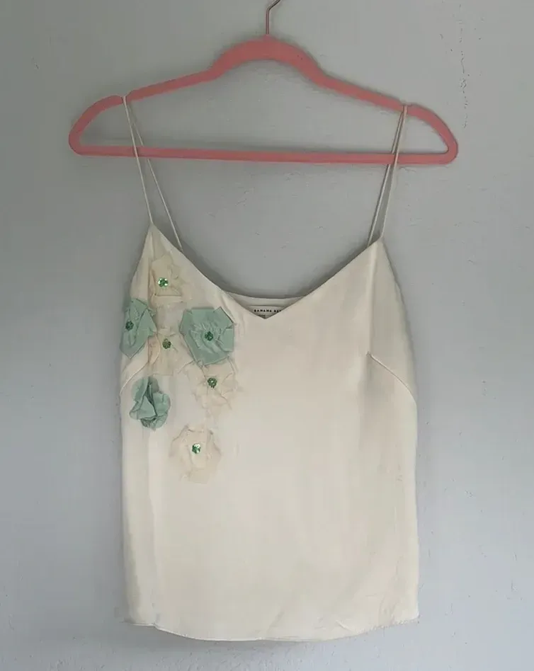 100% Silk Floral Spaghetti Strap Tank Top S - $25 - From Miami