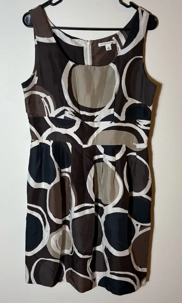 Banana Republic 100% Silk Sleeveless Sheath Dress Brown Beige Black Circle Print Size 10. Elegant an... Show more