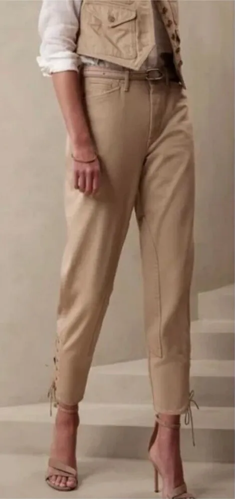 Banana Republic Barrel Leg Riding Safari Pants in a khaki tan color. These are in the size women's 4... Show more