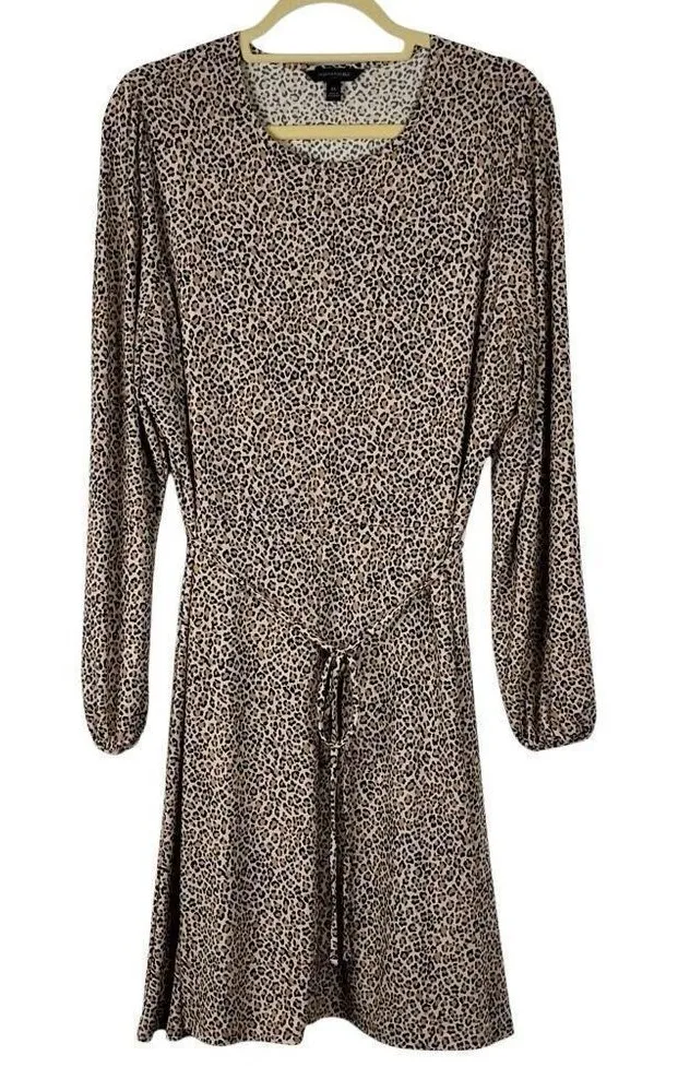 Banana Republic Animal Print Belted Fit and Flare Long Sleeve Dress XL. Measurements in photos. In... Show more