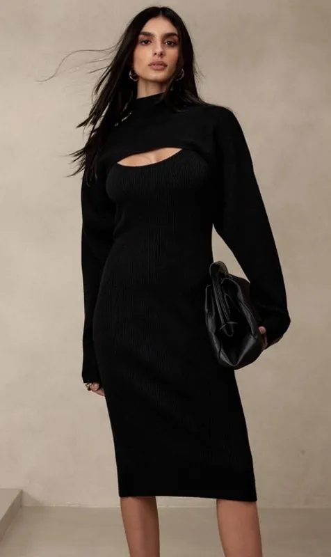 Banana Republic Asti Sweater Dress & Shrug Set Black Tall Large NWT Knit Lenzing Ecovero Serene Swea... Show more