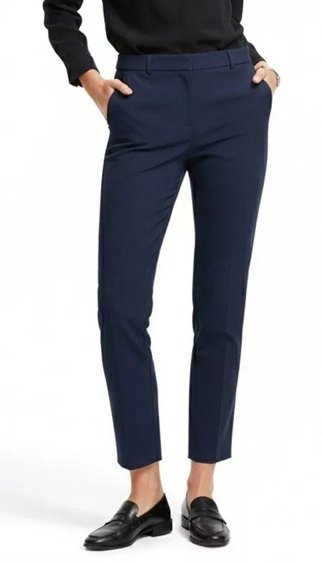 Tailored trouser style Hook and bar with hidden zipper closure Mid rise Slim straight leg fit Ankle... Show more