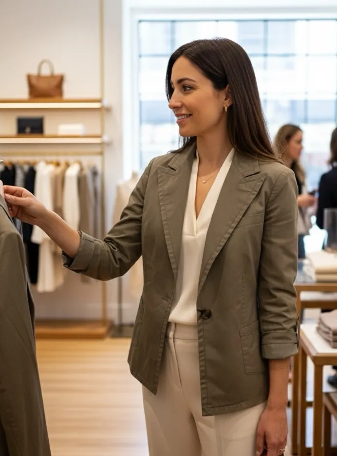 Elevate your wardrobe with this versatile Banana Republic khaki blazer. Crafted from breathable 100%... Show more