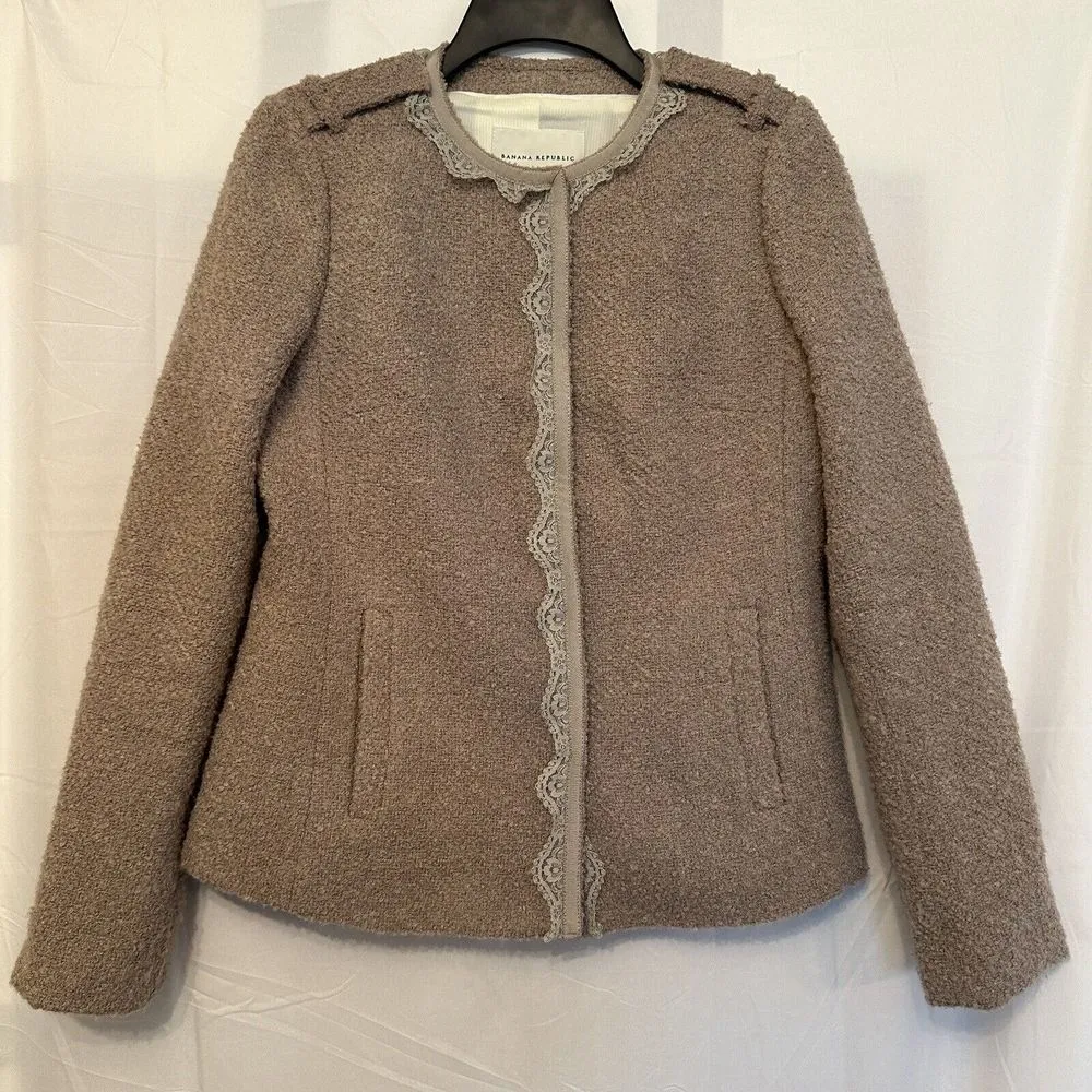 Banana‎ Republic Womens Size 4 Wool Blend Boucle Jacket Blazer Lace Trim Mauve Pink - $27 - From HannahBThrifts