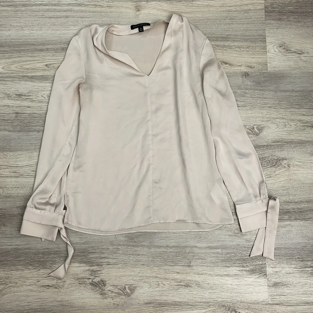 Banana Republic Beige Long Tie Sleeve V-Neck Blouse Size XS Lightweight Textured Material Pullover 1... Show more