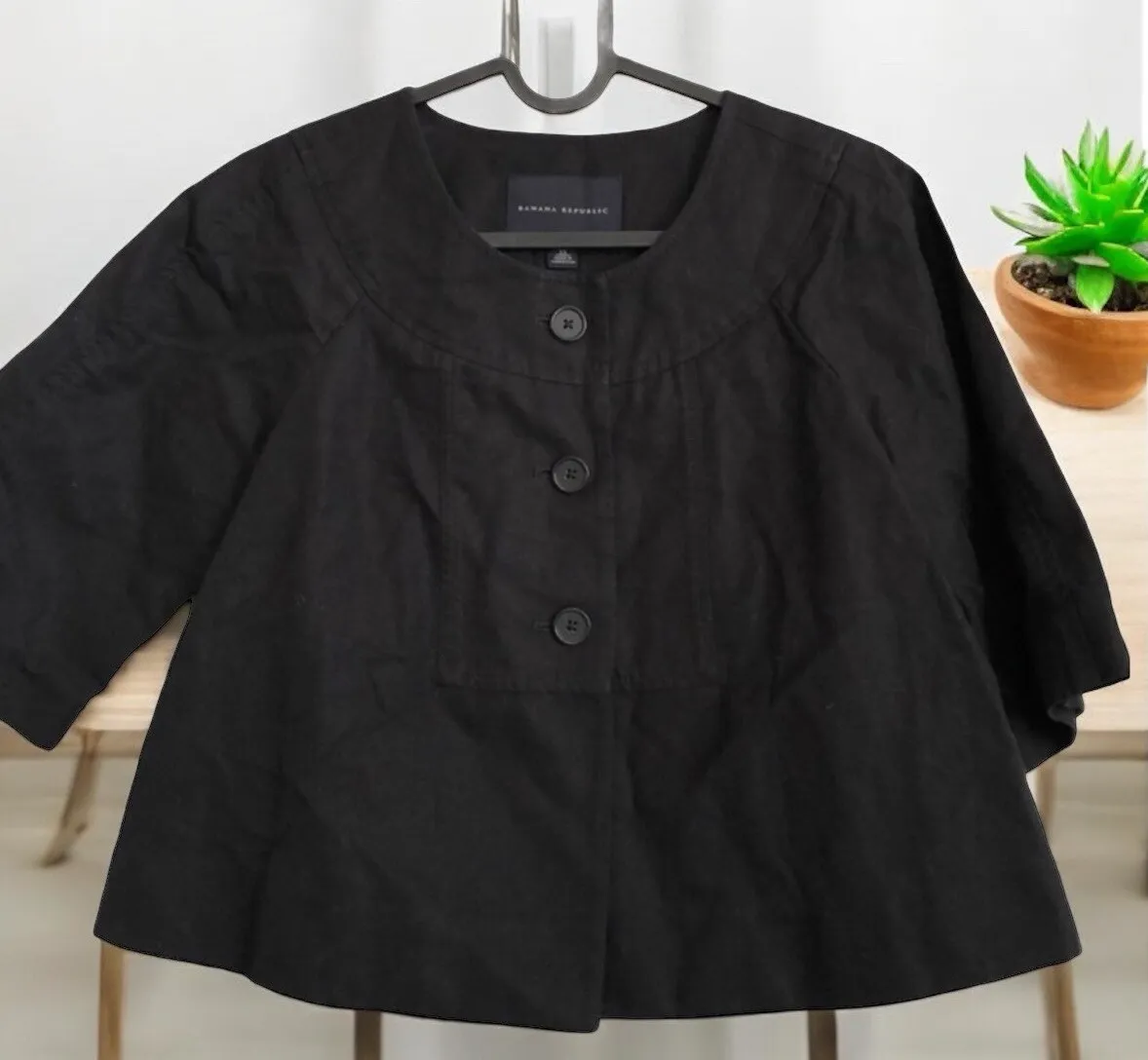 This black linen cotton crop jacket from Banana Republic is a must-have for any fashion-conscious wo... Show more