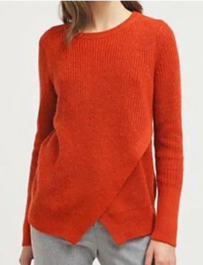 Chic and warm crew neck sweater. Features a vibrant orange hue. Ideal for layering or standalone wea... Show more