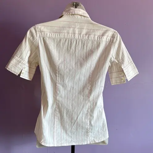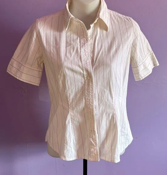 Banana Republic Factory store blouse size XS it’s white with thin red stripes it has short sleeves t... Show more