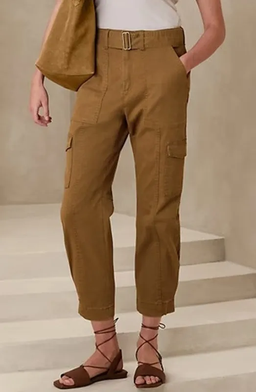 Twill fabric High rise Tapered leg Cargo pockets Patch back pockets Belt loops Button and zip fly So... Show more