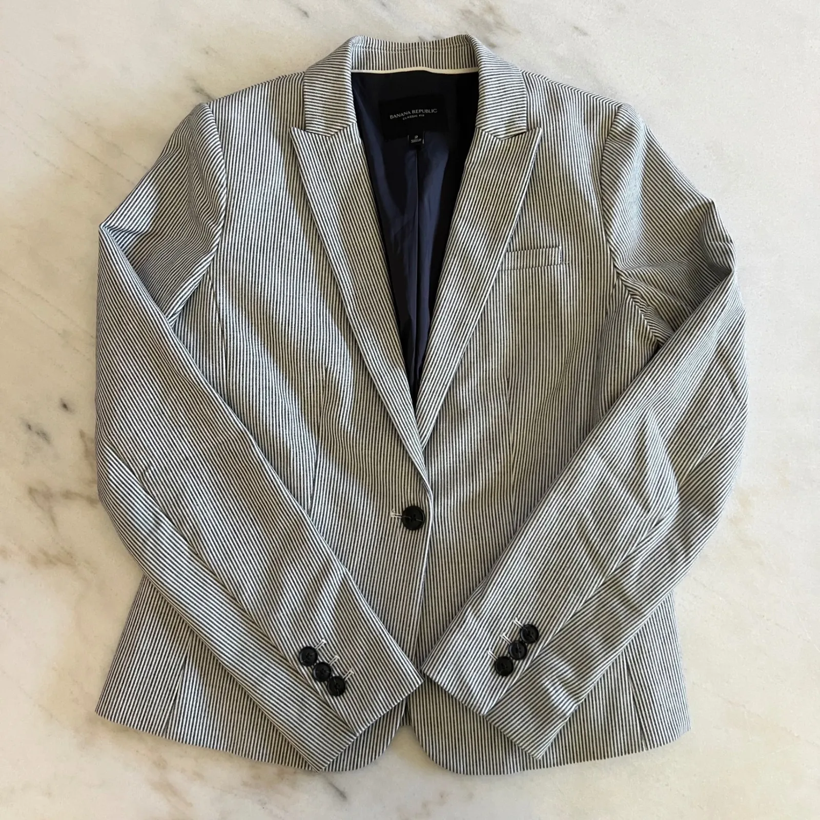 Banana Republic Classic Fit blazer in a seersucker stripe pattern. This tailored jacket features a... Show more