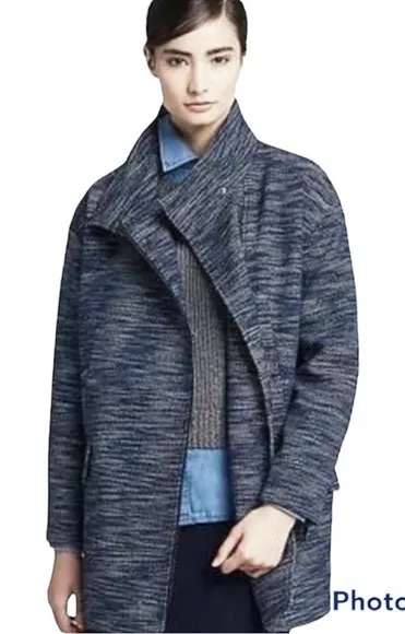 Banana Republic Blue Textured Cocoon Coat ~ blue and white marled textured tweed coat that feature... Show more