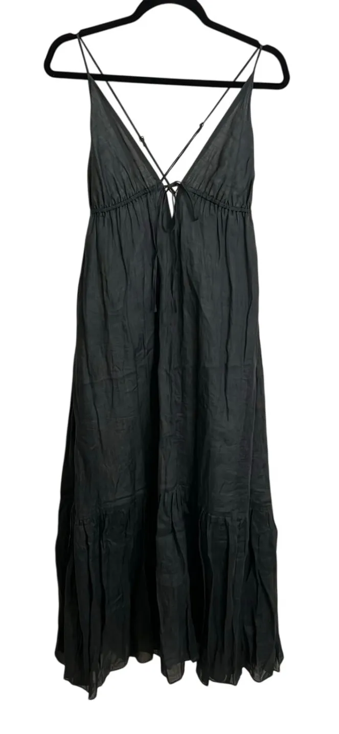 Banana Republic Petite Ramie Maxi Dress in Turtle Green with criss-cross adjustable spaghetti straps... Show more