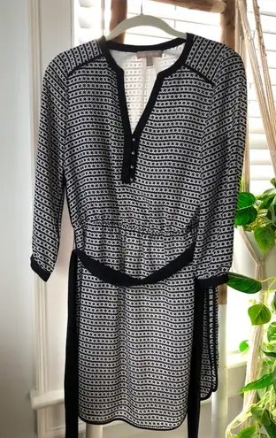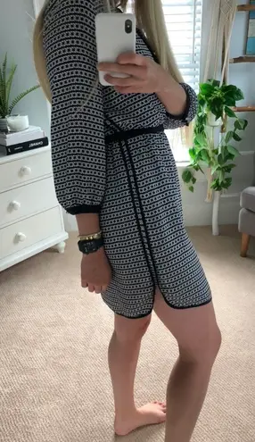 Formal work dress that is super cute and easy! Three quarter sleeves - navy blue with a fun white ro... Show more