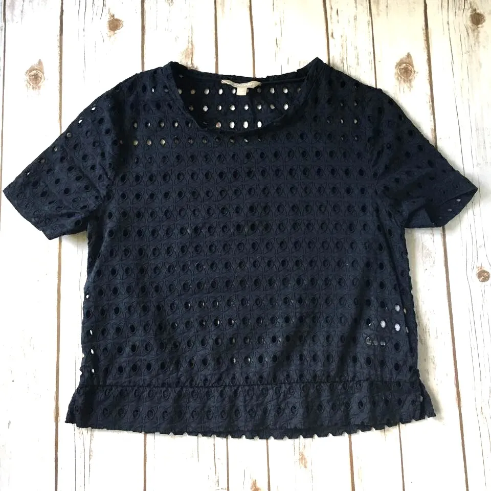 Banana Republic Factory Eyelet Lace Top Women S 4 6 Navy Blue Cotton Coastal Boxy Preppy Condition:... Show more