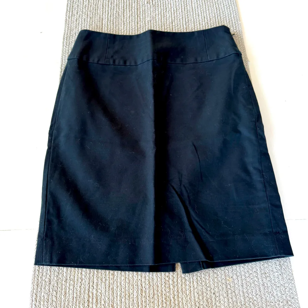 Banana Republic Factory black stretch cotton sateen pencil skirt. Zip closure. Back slit. Measuremen... Show more